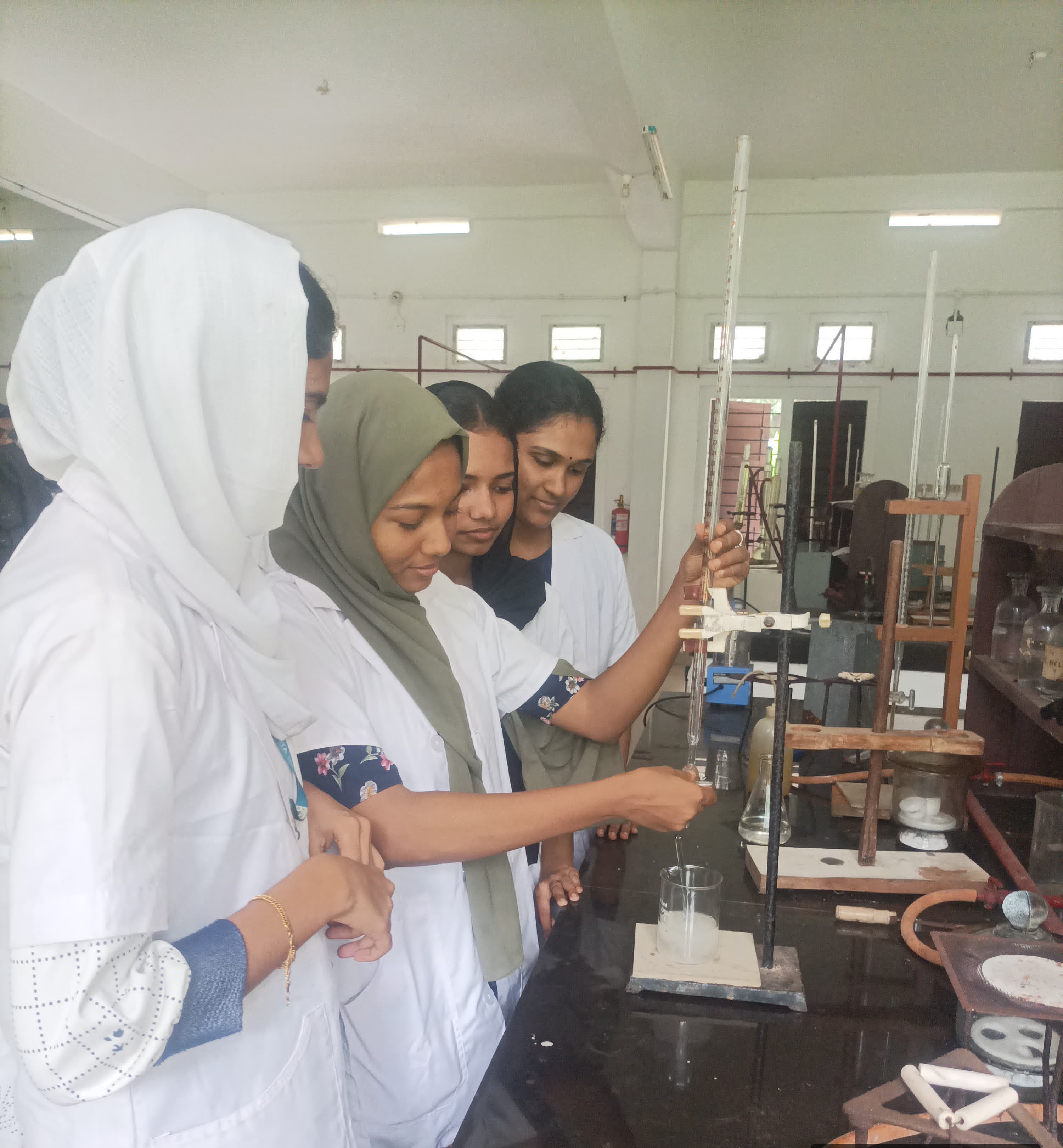 The Bachelor of Science in Chemistry program at Mannaniya College of Arts and Science offers a comprehensive and immersive laboratory experience designed to enhance students' understanding of chemical principles. The lab is equipped with apparatus and tools, providing an environment for conducting a wide range of experiments in organic, inorganic, physical, and analytical chemistry. Under the mentorship of highly qualified faculty, students are encouraged to engage in independent research projects, promoting innovation and critical thinking. The lab assistant supports the faculty and manages the lab during practical sessions.